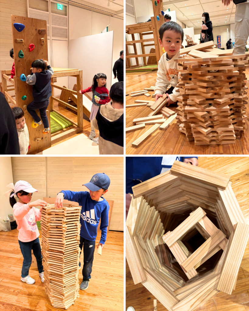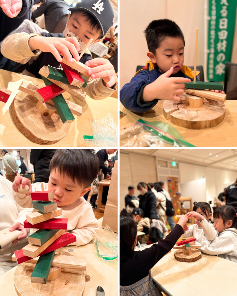 組合ブースでの体験に加え、積み木や木の遊具も大人気。子どもたちが夢中で遊び、家族で協力して物作りに取り組む光景が、フェアの活気をさらに引き立ててくれました。