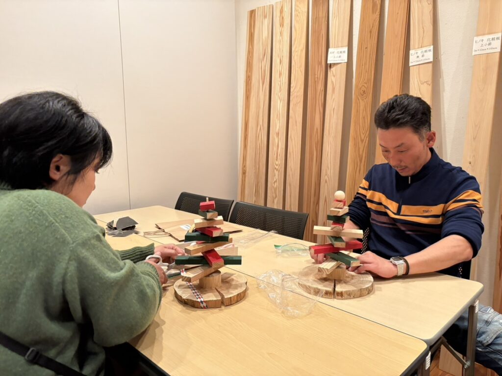 2025年12月7日(日)、〈木と暮らしのフェア〉にてワークショップ「杉のサンギツリーづくり」を出展。