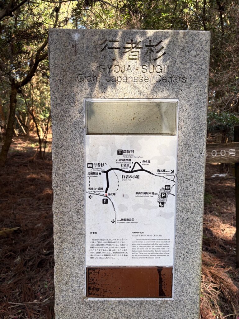 長い年月をかけて育った杉が現在の行者杉の森を形づくっています。